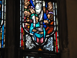 One last detail I loved - one of the stained glass windows features Mary holding the church building in her arms. I forgot to take a picture of the church from the outside, but it's a totally recognizable likeness.